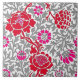 Keramik Tile in einem William Morris Tapete-Design Blume in tiefroten und fuchsienrosa, mit silbergrauen/grauen Weinreben, mit weißem Hintergrund
