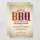Invitation tes amis et ta famille à une grande fête d'anniversaire du barbecue pour célébrer un événement marquant! Les lettres de campagne et le style rustique sont donnés à ce design avec un aspect texturé arrière - plan et des bords ombragés pour un effet vieilli. Comme dans un vieux poster de western recherché, cet invitation ne manquera pas de plaire.