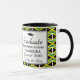 Stilvolle moderne Abschluss-Tasse mit individualisierbarem Text und Foto. Hintergrund zeigt die FLAG OF JAMAICA in einem gefliesten Muster. Design zeigt das Platzhalterbild auf dem verlassen und fügt Ihre persönliche Nachricht auf der rechten Seite hinzu, sowie den anpassbaren Text, der auf GOD BE THE GLORY lautet. Schwarzer Rand mit kleinem Abschluss Obermotiv. Ein ideales Geschenk für Absolventen.