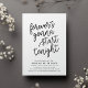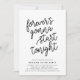 Continuez la fête ! Notre mariage moderne et décontracté après les invitations à la fête en noir et blanc chic fonctionnalité "va toujours commencer ce soir" dans la typographie en script noir avec les détails de votre fête en dessous. Les cartes renversent vers un motif festif aux confettis noir et blanc.