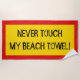 Cette conception occultante comporte le message "JAMAIS TOUCHER MA SERVIETTE DE PLAGE!" en texte noir sur un arrière - plan jaune, avec une bordure rouge.