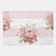Ein süßer, romantischer Rosenblumenstrauß auf breiten horizontalen Streifen des Pfingstrosenrosas, mit flockigen Bienen.