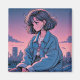 Experience the nostalgic charm of this 90s-inspired anime illustration, featuring classic Japanese cel shading and a stylish girl set against a pastel cityscape at sunset. Perfect for fans of retro aesthetics, street fashion, and pop culture, this design captures the moody essence of a bygone era while celebrating timeless style and vibrant color.