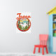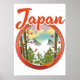 Japan Reiselogo mit der Landschaft mit einem schneebedeckten Berg und Bäumen.