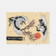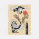 Japanese crane with branch of blooming sakura and red sun. Illustration. Feng Shui theme