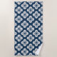 Japanese Navy Blue Ivory Floral Geometric Pattern Strandtuch