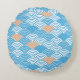 Japanese Waves Pattern Light Blue Beige White Rundes Kissen