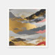 Eine ruhige, japanisch inspirierte Landschaft mit geschichteten Bergen und Bäumen, die durch schimmernde Golddetails geprägt ist. Diese elegante Komposition verbindet traditionelle Ästhetik mit moderner Abstraktion.