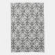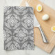 Küchentücher in klassischem japanischem Kimono-Muster aus stilisierten, viergängigen Medallions aus Blätter und Blume in Weiß auf einem silbergrauen/grauen Hintergrund