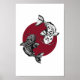 ein dekoratives Kunstwerk von zwei monochromen Koi-Fischen, die auf einem roten Kreis im japanischen Tätowierstil herumschwimmen, als dekoratives Plakatprint.
