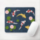 Schöne minimalistische Vektorgrafik von bunten japanischen koi Fisch schwimmen zwischen den Wasserlilien in einem Teich. Koi ist ein in Japan domestizierter Sortenkarpfen in lebhaften Farben.
