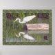 Weiße Krane bewundert sich im Bach. Unterzeichnet mit Kanji von "Dragon". Japanische Druckmatte im Poster.