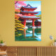 Bäume und Natur umgeben den japanischen Tempel und spiegeln die nahe gelegene Wasserkunst wider.