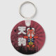 Dieser Schlüsselanhänger mit roten und schwarzen Tasten zeigt einen Cartoon, der von einem Daitengu zeichne, einem der Yokai-Monster aus der Mythologie Japans. Der Daitengu ist eine der beiden Arten von Tigu und wird durch seine lange Nase und rote Haut leicht erkannt. Obwohl Tigu bösartig sein kann, ist dieser niedlich. Die großen Kanji im Hintergrund sagen "Tengu" auf Japanisch.