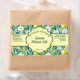 Ein Etikett für Seife- und Badeprodukte mit Zitronenuntergrund. Passen Sie es mit Ihren Produkt- und Geschäftsinformationen an.
