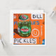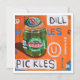 Kunstdruck eines Glases von Pickles mit orangefarbenem Hintergrund und Text.