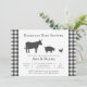 Jardin Baby shower Invitation en gris et blanc - parfait pour un jardin barbecue, douche à couple, pique-nique extérieur .. Ce charmant design rustique présente une typographie vintage et des en vichy traditionnels en gris et blanc avec des animaux de ferme en silhouette. Le titre indique le Baby shower Jardin, que vous pouvez customiser si vous le souhaitez, par exemple Bibs et Ribs, Brews & Bbq et BaByQ sont également populaires. Parcourez ma boutique pour trouver des couleurs alternatives, des agencements et des décors de fête assortis.