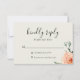 Chic Aquarellpfirsichpfirsichpfirsichpfirsichpfirsichpferde und Blätter, RSVP-Karten. Personalisieren Sie den Text, passen Sie den Stil, die Farbe und die Größe des Schriftartes an. Die Hintergrundfarben in Taube und Smaragd können ebenfalls angepasst werden. Entworfen, um unsere Jardin De Fleurs Kollektion zu ergänzen.