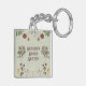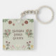 Un porte - clé de jardin vintage aux éléments floraux et au texte personnalisé, dans des couleurs vertes, rouges, roses, blanches et jaunes.