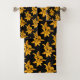 Ces jolies serviettes de bain disposent d'un motif extensible de deux lys asiatiques jaunes dorés contre un arrière - plan noir pur.