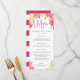 Conçu pour correspondre à notre Rosé Garden dégustation de vin invitation à la douche nuptiale, les menus comprennent des fleurs d'aquarelle de couleur vive en rose, rouge et jaune, flanquant vos détails de menu.