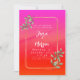Transformez votre beau rêve d'un paradis tropical en réalité avec nos Invitations de Mariage de Sunrise du Jardin Tropical. L'arrière - plan orange, rose, jaune et violet captivant représente les étonnantes teintes d'un lever de soleil tropical et encadre vos détails mariages dans un script blanc moderne et élégant. Un cadre or exquis bordé de feuilles d'eucalyptus est l'espace parfait pour personnaliser vos détails pour créer votre faire-part de mariage exclusif. Le design d'inspiration naturelle et dynamique est entouré de magnifiques représentations d'oiseaux de paradis, donnant ainsi le ton et l'humeur nécessaires à votre journée inoubliable.