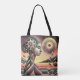 Farbenfrohe abstrakte Grafik einer Frau, die in Blume, Sonne und Sternen verziert ist, mit einem Aquarelleffekt und Texturen.