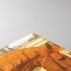 Dieses Design zeigt ein Gemälde des britischen Impressionisten Algernon Talmage (1871-1939). Es zeigt ein schönes kastanienfarbenes Pferd, das der spanischen Frau Señorita Juanita Díaz gehört, die die Zügel des Pferdes in ihrer Hand hält, während sie daneben steht. Jasmine hält das Pferd anmutig. Auf der Rückseite des Pferdes ist ein Sattel. Die Dame und ihr Pferd sind auf einem offenen Feld stehend, auf dem die Bäume entlang der Seiten wachsen. Das Originalwerk wurde 1933 gemalt.