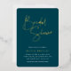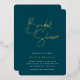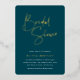 Erleben Sie die Braut mit den modernen und minimalen Brautduscheinladungen. Einfaches Design mit "Brautparty" in handgeschriebenen Schriften aus Goldfolie, darunter Ihre Veranstaltungsdetails auf einem dunklen Jasper-grünen Hintergrund.