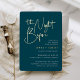 Die Gäste werden eingeladen, das glückliche Paar mit diesen modernen und minimalen Duscheinladungen zu feiern. Einfaches Design zeigt "the night before" in lässiger, handgeschriebener Schrift aus Goldfolie, mit unten rechts ausgerichteten Veranstaltungsdetails auf einem reichen Juwelenton smaragdgrünen Hintergrund.