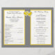 Ce programme ou ordre de service de mariage floral jaune, gris et blanc de 8,5 po x 11 po présente des fleurs jaunes dorées, un ruban imprimé jaune et une paire de parties scintillant et de diamants IMPRIMÉS ont joint des coeurs qui correspondent au faire-part de mariage ci-dessous. Il est conçu pour être plié au centre. ****VEUILLEZ NOTER que le papier de qualité supérieure est un stock de carte et ne se plie pas bien (craque la conception). Tout le texte est personnalisable. Envoyez un courriel à niteowlstudio@gmail.com si vous avez besoin d'aide pour personnaliser ce service ou si vous avez des questions ou des demandes. Je serais heureux de composer votre programme en utilisant des polices plus fantaisistes que ce que je suis en mesure de faire sur Zazzle. Envoyez-moi juste un e-mail.