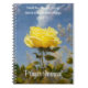 Le devant de ce carnet en spirale de journal présente ma photo originale d'une rose jaune dans un jardin. L'image a été traitée dans un style illustratif et aquarelle peinte avec une touche de fantaisie dans l'oeuvre. La Bible Écriture de Job 8:19 est en haut de l'image et en bas sont les mots "Journal de prière". Écrire des demandes de prières, des listes ou des pensées est un bon moyen de les suivre et de suivre les prières auxquelles on a répondu. Prier pour les autres est un privilège et il y a de la joie quand les prières sont accomplies. Cela ferait un grand cadeau à quiconque aime garder les prières et les pensées dans le souvenir et est pratique pour se rencontrer en communion ou en études bibliques. Il ferait aussi un joli cadeau de Noël ou de Pâques.
