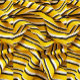 Plan rapproché d'un morceau de tissu avec un motif rayé en jaune, noir et blanc, le tissu est drapé et plié, créant une série de courbes et d'ombres qui ajoutent profondeur et texture à l'image, les bandes sont de largeurs variables, les bandes jaunes étant les plus proéminentes, les bandes noires et blanches sont plus fines et offrent un contraste, le tissu semble léger et légèrement brillant, permettant à la lumière passer et créer des variations subtiles de l'intensité des couleurs, l'effet global est dynamique visuellement et engageant, avec l'interaction des lignes et des ombres créant un sentiment de mouvement et de fluidité.
