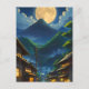 Der Mond scheint über eine kleine Stadt in Java, Indonesien, mit einem großen Berg im Hintergrund.