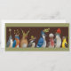 Flachkarte mit Vögeln, die Naturhüte und Masken tragen