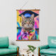 Lebhaftes Hängeband mit skurrilen Kunstwerken. Dieses charmante Tabby mit einer blauen Gradmütze und einem gefärbte Krawatte-Schal hinter einem pskychedelischen Hintergrund. Alma Wad nutzte Canva AI, um dieses Meisterwerk zu kreieren. Ideal für alle, die niedliche Katzen, psychedelische Vibes und lustiges Abschluss Thema Lieben.