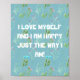 Je m'aime et je suis heureux comme je suis, poster. Un poster ravira les amateurs. Remplissez votre maison ou espace de bureau avec des vibes positives. Fait un cadeau parfait pour les occasions spéciales et vos proches.