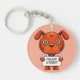 Un porte - clé compact et adorable avec un chien robot triste dans une situation humoristique. Le chien métallique futuriste est montré assis avec une expression de faux, tenant une petite pancarte qui dit : "Je ne suis pas un robot", alors qu'il lutte avec une invite CAPTCHA d'un site web.