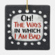 Un design typographique amusant qui dit "Oh! Les Façons Dont Je Suis Mauvais". C'est du texte en noir et rouge sur un rectangle blanc avec des points blancs amusants autour, le tout sur un arrière - plan gris.