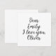 Modèle de texte personnalisable mignon : Chère Emily, je t'aime, Alexander. Cliquez sur Modifier et modifier uniquement les noms ou le texte entier.