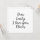 Modèle de texte personnalisable mignon : Chère Emily, je t'aime, Alexander. Cliquez sur Modifier et modifier uniquement les noms ou le texte entier.