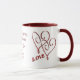 Ça continue à s'améliorer - Je t'aime avec une paire de coeurs rouges entrelacés et le mot Aimer café ou tasse de thé - dessins de Susan. Vous pouvez personnaliser cette tasse et modifier ou ajouter le texte que vous voulez. Disponible en différentes tailles et styles. Carte de correspondance disponible dans ma galerie. Idée cadeau pour les anniversaires, la Saint-Valentin, les anniversaires ou toute occasion. Cette image est disponible sur de nombreux produits dans ma galerie.