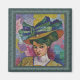 Farbenfroher quadratischer Magnet, mit dem berühmten Ölgemälde Frau in Hat von Jean Metzinger und Set in einem aquamarinen Rahmen. Passen Sie auf, um Ihren eigenen Text oder verlassen, wie es ist, für eine Miniaturversion dieses berühmten Gemäldes bereit, Ihre Metalloberfläche zu dekorieren.