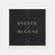 Diese schwarze Hochzeitsserviette der Everly Collection zeichnet sich durch knallige Weißtöne, geometrische Deko-Akzente und redaktionelle Abstände aus. Die schlichten, dünnen Dreizeilentexte bilden einen eleganten Rahmen für ein raffiniertes, modernes minimalistisches, Abend-orientiertes Design. Personalisieren Sie Ihre Papiercocktail-Servietten mit den Namen des Paares. Diese Servietten können für Hochzeitsempfang, Probe Dinner, Verlobungsfeier und vieles mehr verwendet werden!