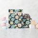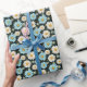 Das Umschlagpapier wird mit einem schönen blauen, dunklen Blumendruck gezeigt. Passen Sie dieses Objekt an oder kaufen Sie, wie es ist. Lizenzierte Printwerbung