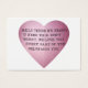 Stapled zum Shirt war ein rosa Papierherz mit typisierten Informationen: HELLO DA. WIR HÖRTEN, DASS WIR DAS BRAUCHEN. SORGEN SIE SICH NICHT, WIR LIEBE SIE. JEDER TEIL VON IHNEN GEHÖRT IHNEN.