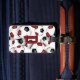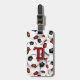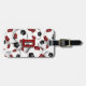 Dieses Fußball-Team Farben Gepäckanhänger zeigt das Bild eines Clusters von variabler Größe Maroon, schwarz-weiße Fußball-Bälle auf der Vorderseite - anpassen mit dem Monogramm des Athleten auf der Vorderseite und Adresse Info auf der Rückseite - von katz_d_zynes
