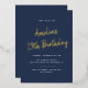 Jedes Alter | Navy Blue and Gold Script Birthday Folieneinladung