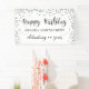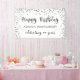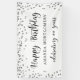 Feiern Sie jedes Jahr Geburtstag mit dem Banner "HAPPY BIRTHDAY" personalisiert mit ihrem Namen und wie viele Jahre sie feiern. Modernes, elegantes Design mit silbernen Konfetti-Rahmen und schwarzem Script-Schriftart. Wenden Sie sich an den Designer, wenn Sie dieses Design modifizieren möchten, ein anderes Produkt erwerben möchten oder wenn Sie Gegenstände koordinieren möchten, um Ihr Party-Ensemble zu vervollständigen.