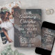 Verkünden Sie die freudige Nachricht von Ihrem nächsten Post-Evolution-Party mit einzigartigem benutzerdefinierten Foto-Overlay "We do, We do, We eloped!" Save the Date Einladungen. Die 2 Bilder, der scannbare QR-Code und alle Formulierungen auf dieser Einladungsvorlage sind einfach zu personalisieren. (IMAGE PLACEMENT TIP: Eine einfache Möglichkeit, ein Foto genau so zu zentrieren, wie Sie es gewollt haben, ist es, es einzuschneiden, bevor Sie es auf die Zazzle-Website hochladen.) Passen Sie es für jede Art von Feiern an, wie z.B. nur Hochzeitsempfang, Verleihfeier, Ehrenfeier oder Party zum 1. Jubiläum. Geben Sie das Heiratsdatum, den Standort, die Website oder andere wichtige Details Ihrer Wahl ein. Das elegante Schwarz-Weiß-Design mit zwei Bildern des frisch verheirateten Paares, modernster, handgeschriebener Skriptkalligraphie und stilvoller Schreibmaschinentypografie. Durch das Scannen des QR-Codes mit ihren Handys werden die Gäste direkt auf die Hochzeitswebsite geschickt, wo sie alle wichtigen Details sehen und sich online mit Ihnen verbinden können. Diese stilvolle Ankündigungskarte ist eine elegante Möglichkeit, Freunde und Familie über Ihre bevorstehende Feier zu informieren. Herzlichen Glückwunsch an die Braut und Bräutigam!